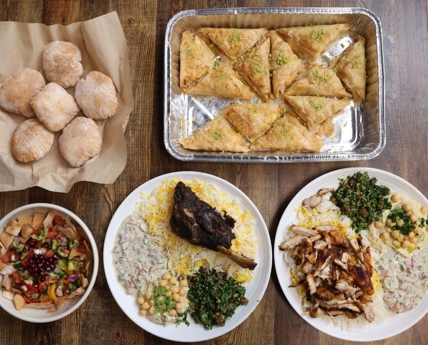Comes with half rice tray and your choice of side of mixed salad or cucumber laban