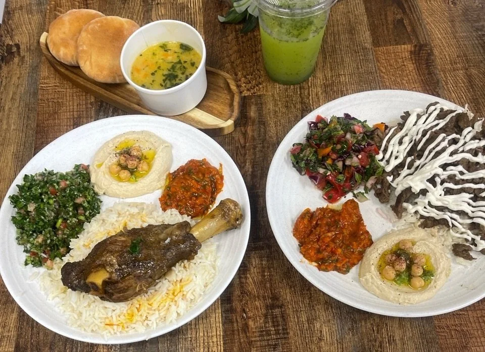 Tender, seasoned ribeye beef shawarma, flavorful, seasoned chicken paired with rice, hummus, Turkish salsa, and your choice of tabbouleh or mixed salad. Served alongside our warm, freshly house-baked pita.